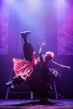 ![]() 表助視点の、ろうそく男に襲われる光景。 | ![]() 後助視点の、表助が気でも触れたように一人暴れ回る光景。 二つの光景がクロスする。 |