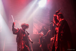 ![]() ろうそく男が表助の刀を奪い斬り掛かってくる。 突然のことに驚きながらも、サーベルで応戦する表助。 | ![]() 何が起きているのかと動揺する表助。 手にしたサーベルから何かが流れ込み、 意識が遠退いていく。 |